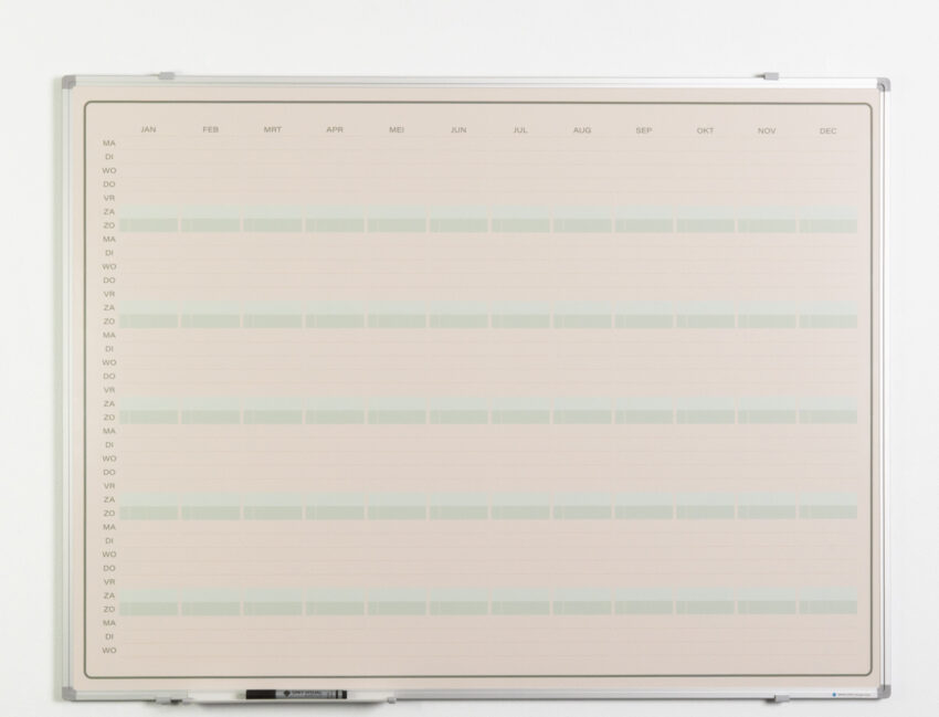 Bekijk onze vaste reeks planborden, inclusief de fraaie Elegance reeks met weekplanner, maandplanner en jaarplanner. Doordat de bedrukking tot diep in het oppervlak zit, is het kras vast en verkleurt het niet. Het bord heeft een warme basiskleur met moderne accentkleuren, passend bij actuele kantoor- en klaslokaaltrends.