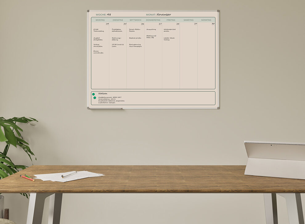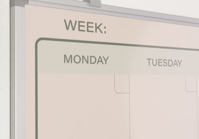 Voor ondernemingen, onderwijs- en zorginstellingen wereldwijd vormen whiteboards de basis voor visual management. Ze brengen structuur en transparantie in de organisatie. Vaak heeft een onderneming, afdeling of team zo’n eigen manier van werken dat één standaard geproduceerde voorbedrukking niet werkt voor universeel gebruik. Een medisch team heeft een hele andere planning dan een docententeam. Een whiteboard met gepersonaliseerde print biedt daarom uitkomst.